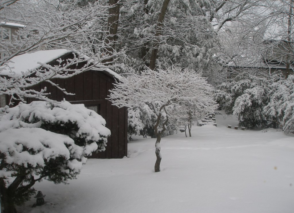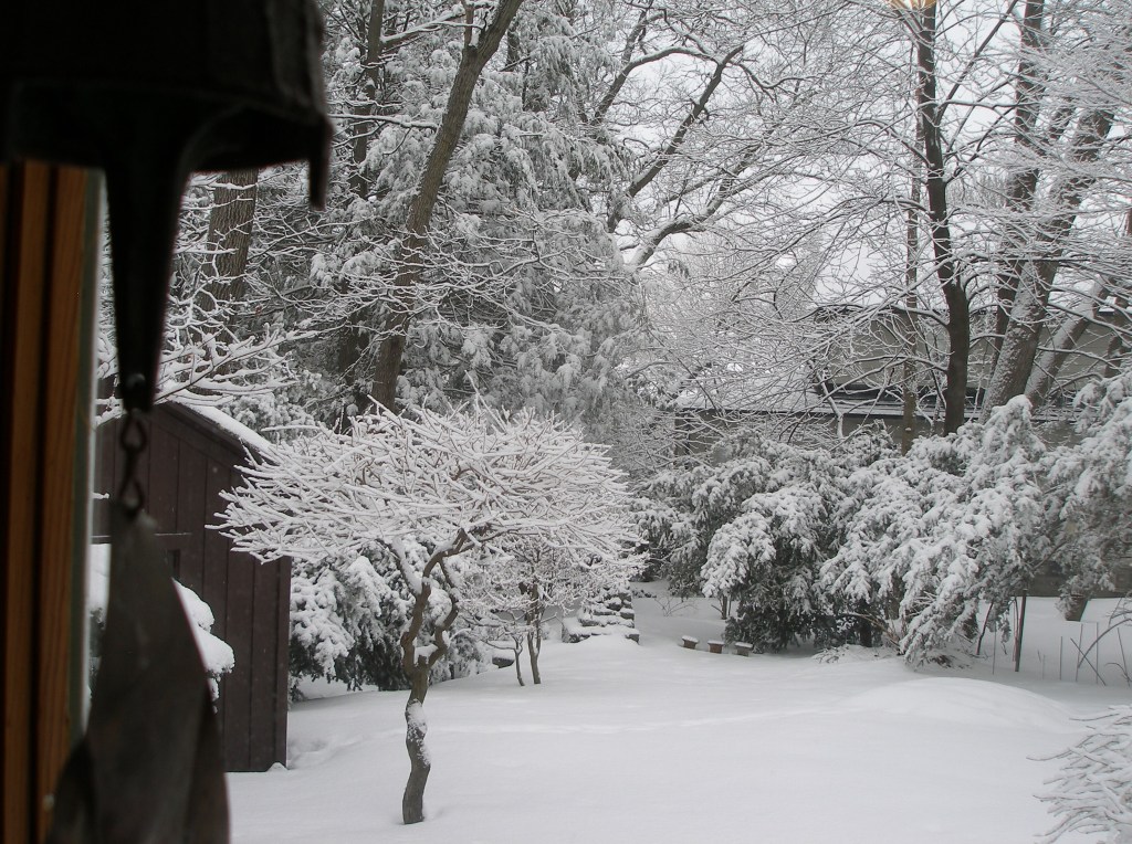 Reviewing photos of my Japanese inspired tea garden, I found a variety of different effects from delicate “snow blossoms” to deep mounds of snow left by blizzards.