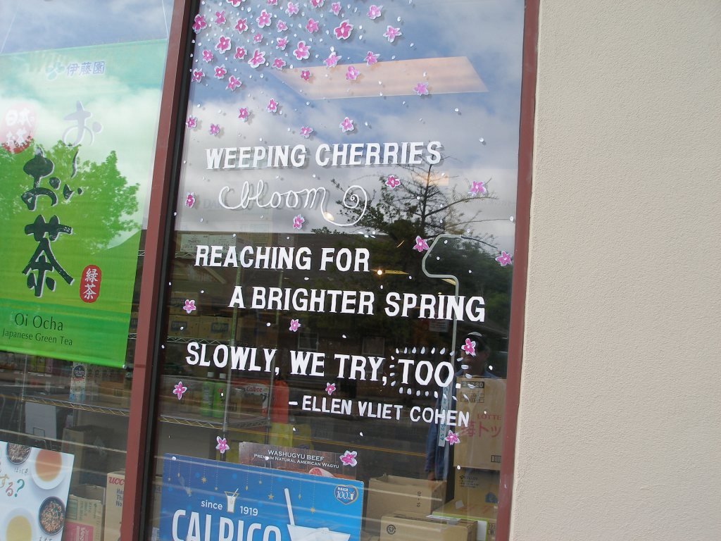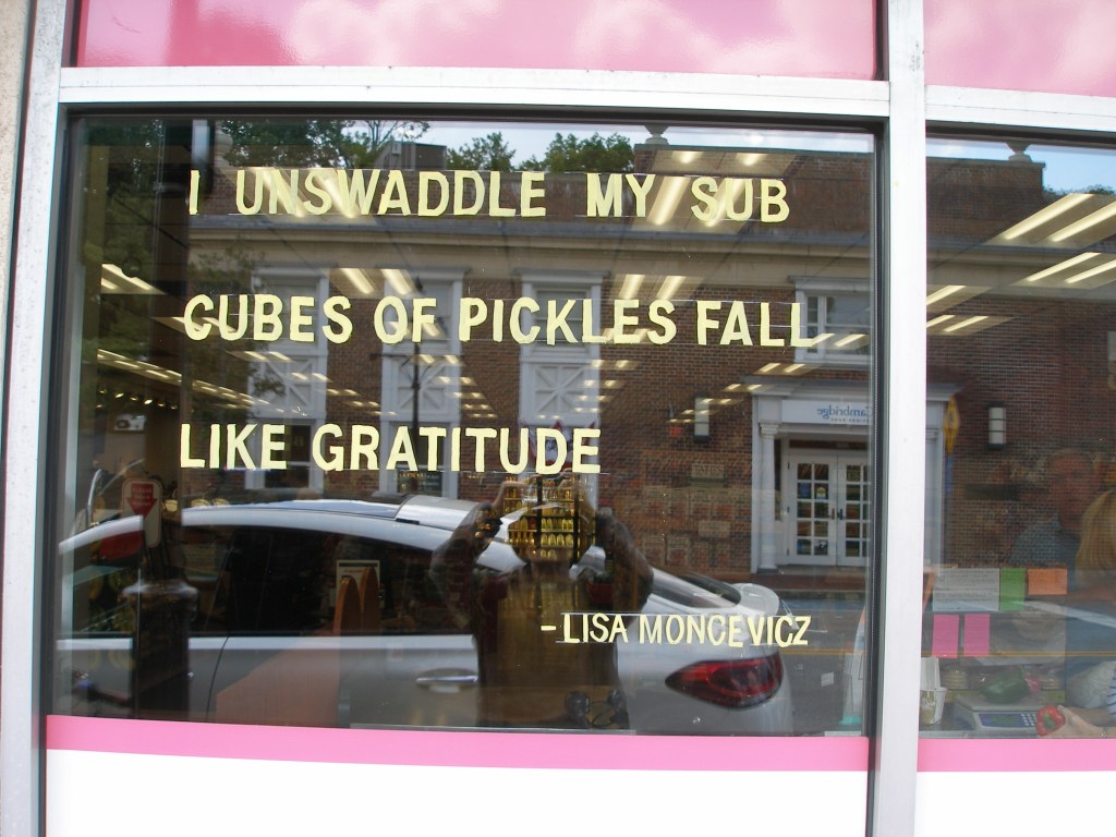 I noticed that some of the signs shop owners had put up in their windows felt a bit like poems. Looking back along the street, I knew it had happened again. I felt a new appreciation for this particular corner of the world.