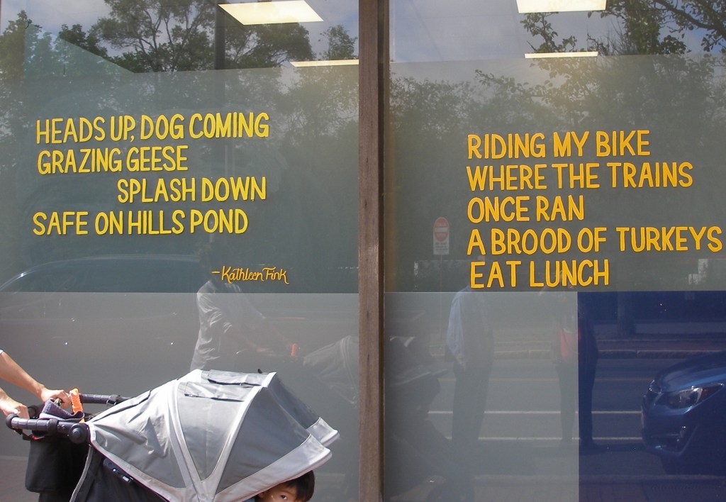 As I walked along Massachusetts Avenue near its intersection with Park Avenue looking for haiku from the contest, I came across several in the process of being painted. I said to one of the painters, “Maybe this has started something. Maybe there will be more poetry displayed in Arlington Heights.” The woman doing the painting agreed that should happen.