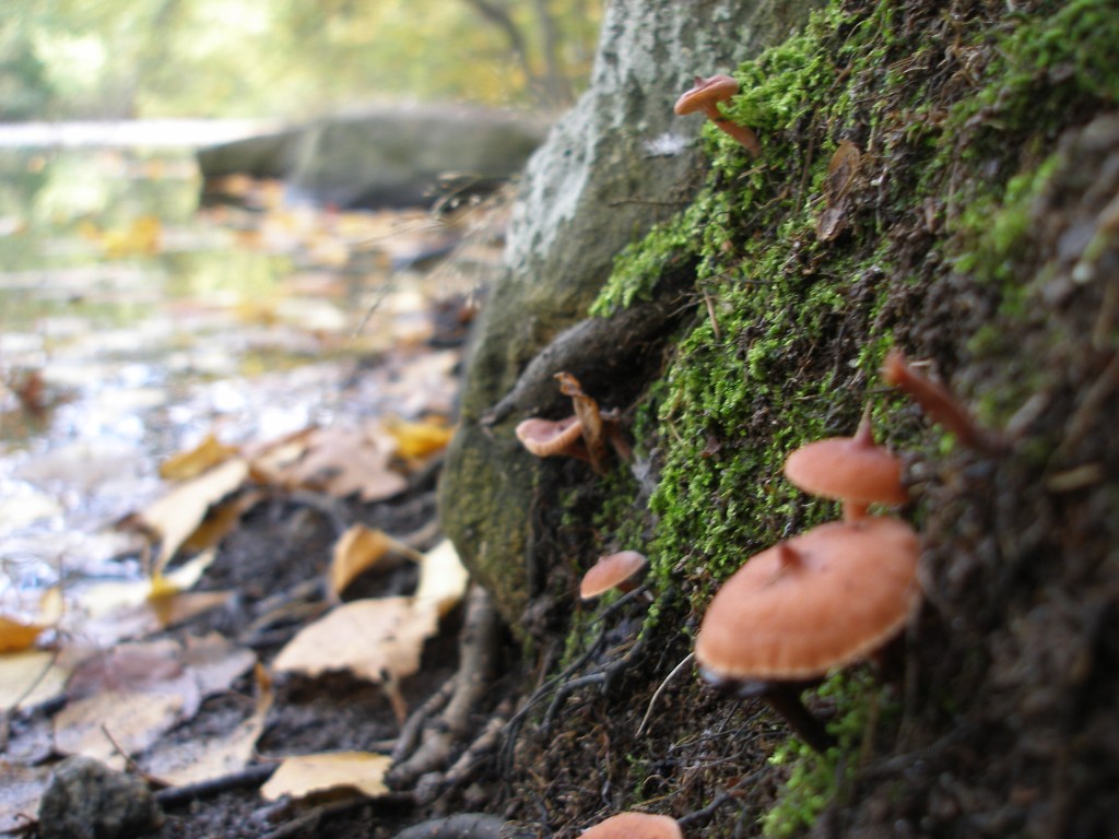 Nature is constantly shifting and not just with the normal seasonal changes these days. This early fall, I would certainly welcome some quiet green time on my morning walks in Menotomy Rocks Park (Arlington, Massachusetts, USA), but nature had its own ideas. After abundant rain all summer, amazing fungi were popping up everywhere and calling out to have their portraits taken. In the last photo below, the lighting was perfect to capture falling spores.