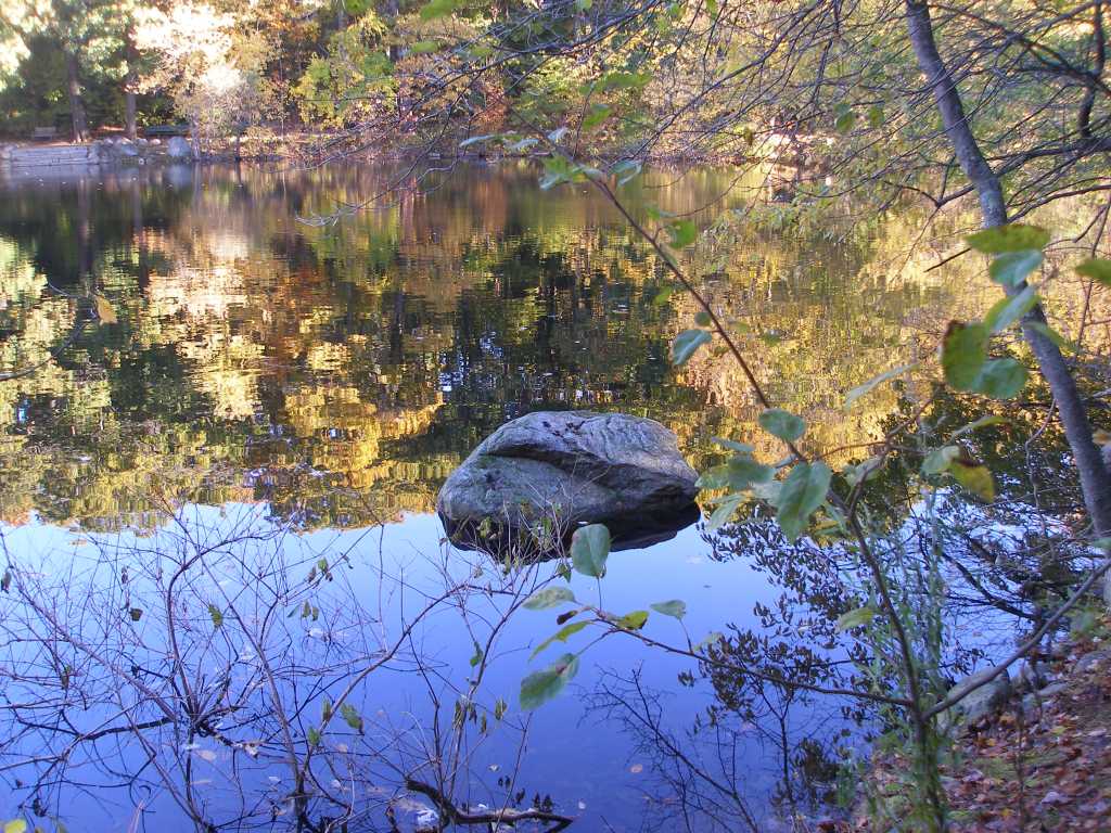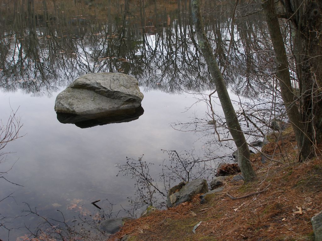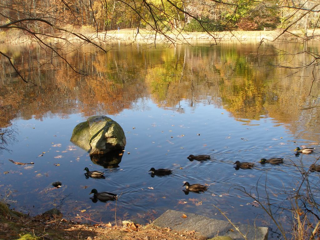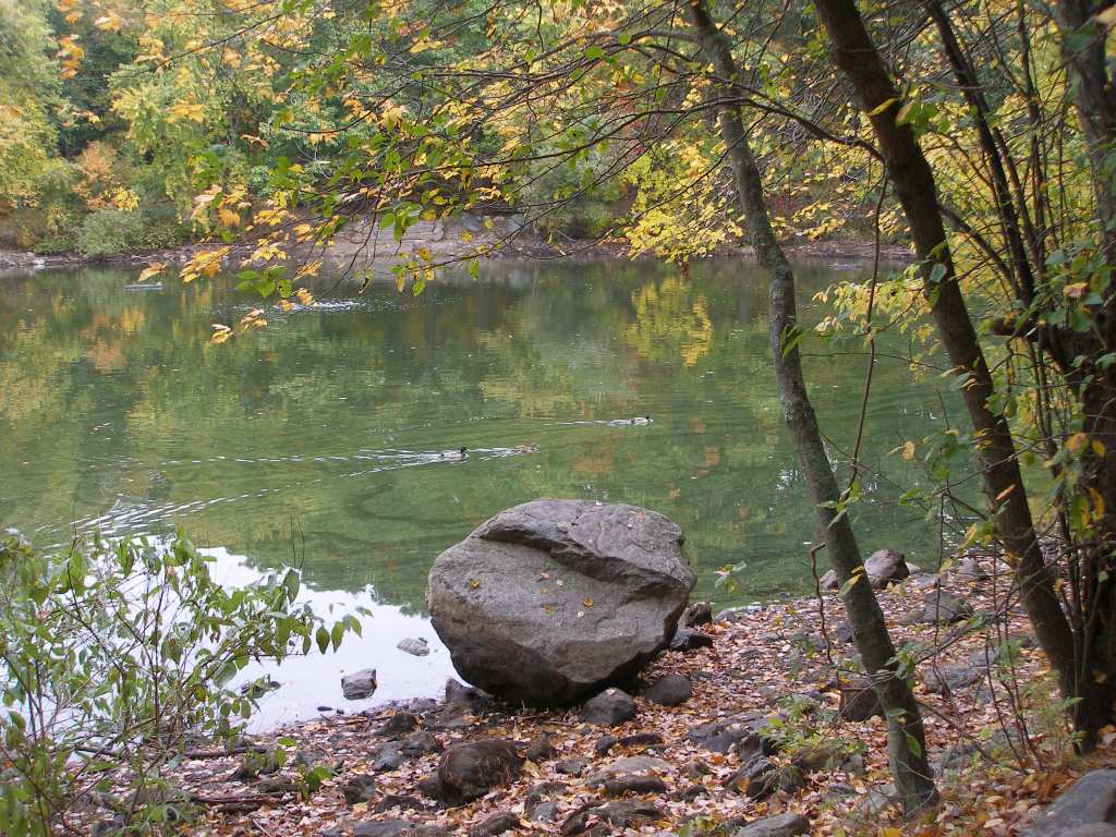 Waiting unperturbed, the boulder bore silent witness to ducks returning as brilliant colors in shades of yellow, orange and red mixed with the greens. Though all of this, the boulder sat with perfect equanimity. It had me wondering whether I could be more like that. Probably not, but that I could appreciate (and hopefully remember) its still presence seemed to count for something.