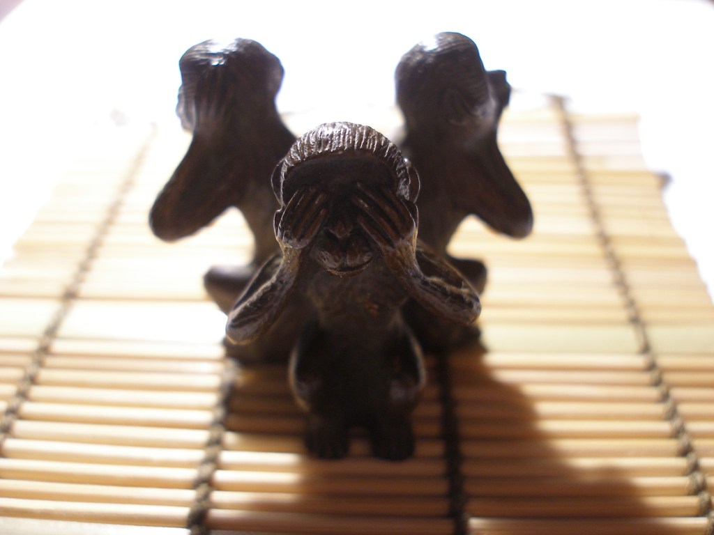 An article about the symbolism of the three monkeys noted, “During the Warring States period of China, around 475 to 221 BCE, the Analects of Confucius included the proverb of looking not at what’s contrary to being right; listening not to what’s contrary to being right; making no movement which is contrary to being right.”