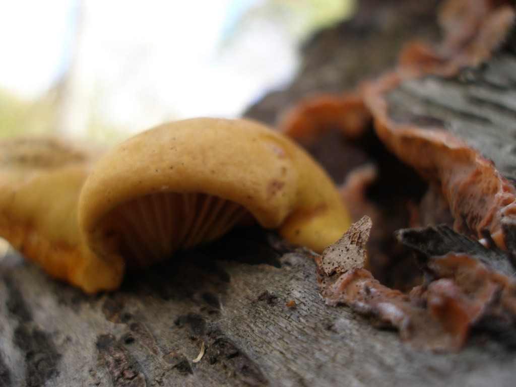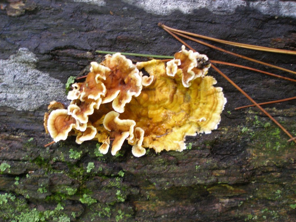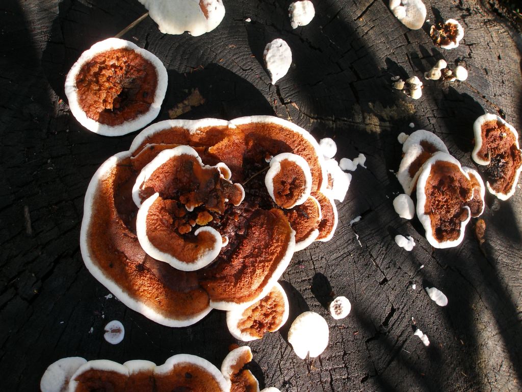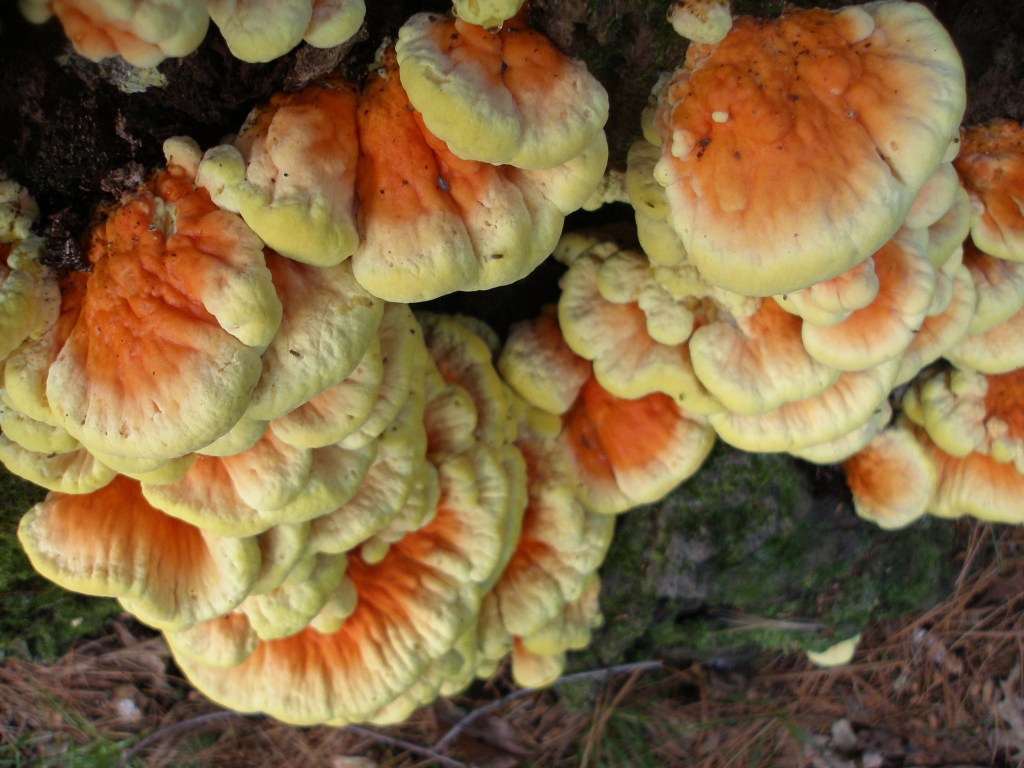 This year the rains have started again after a prolonged draught. I came across yellow and orange Chicken of the woods brackets where I found them last year as this video suggests I might. And there were a few other interesting fungi, mostly in shades of white, tan and brown. As the season is not yet over, I will add additional examples below.