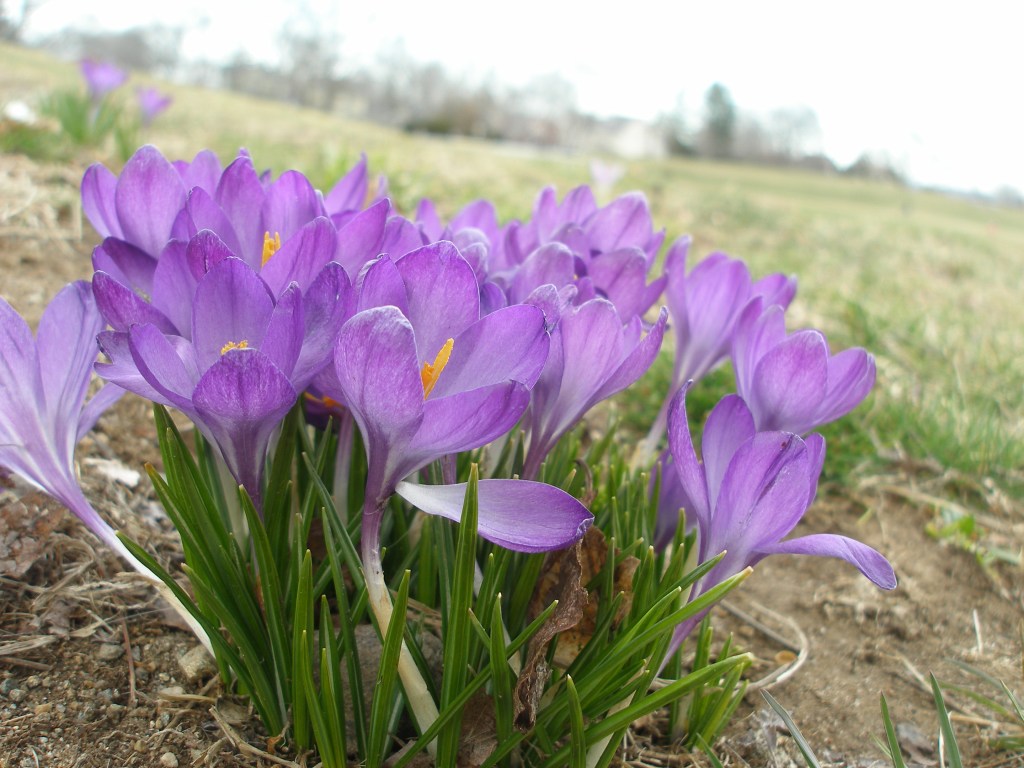 These crocuses planted by volunteers in a nearby park certainly brightened my day.