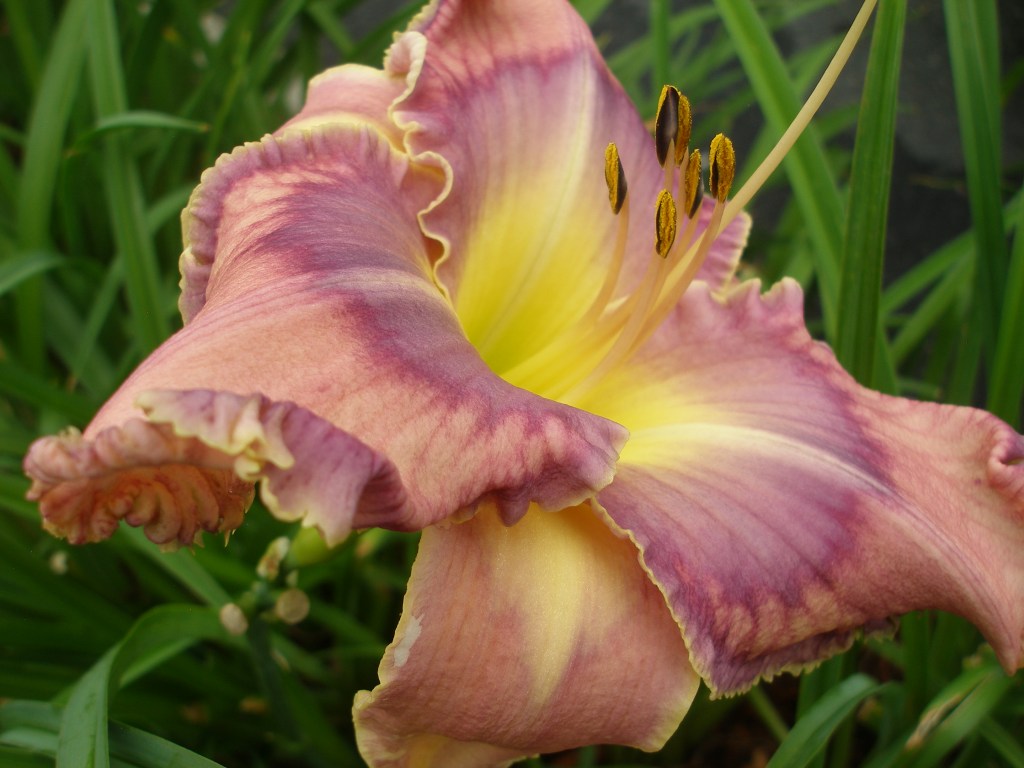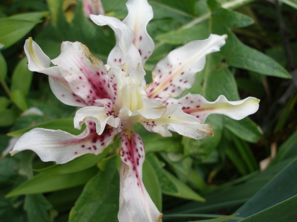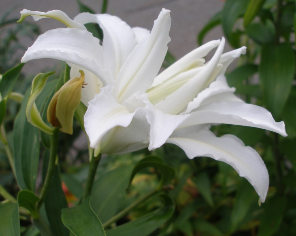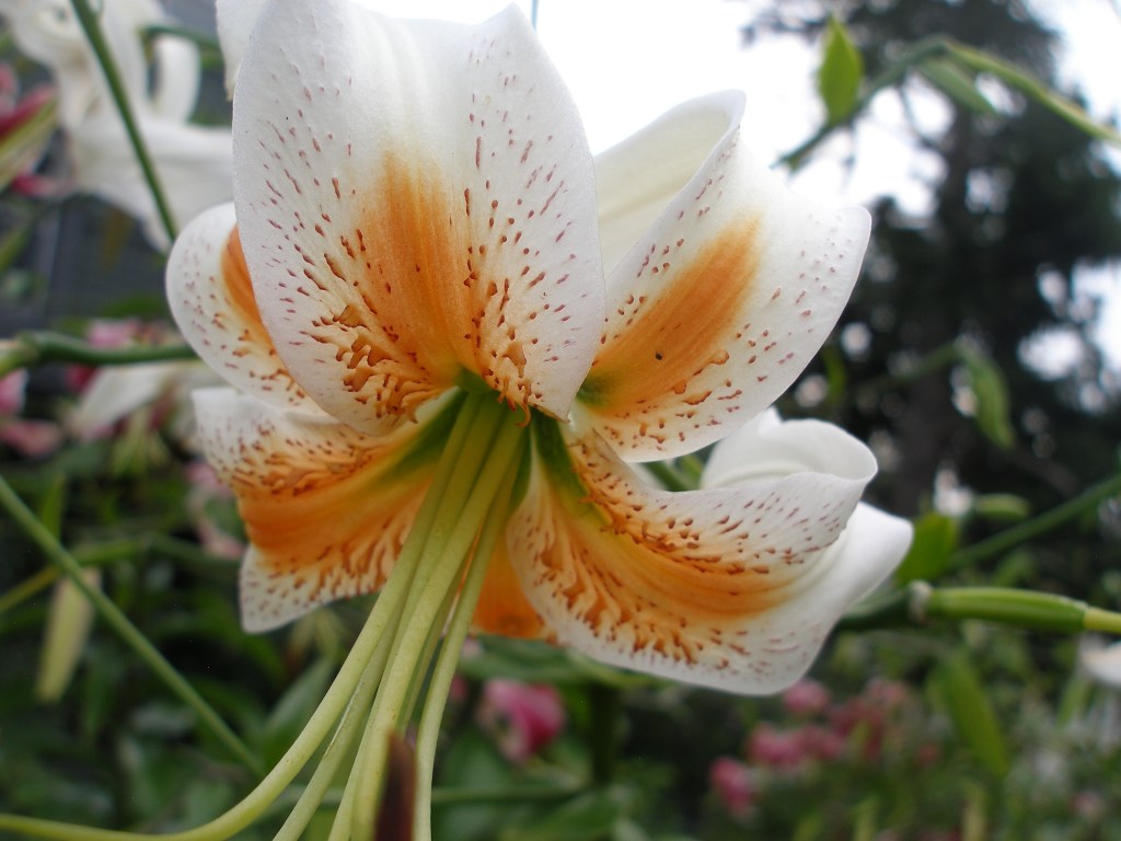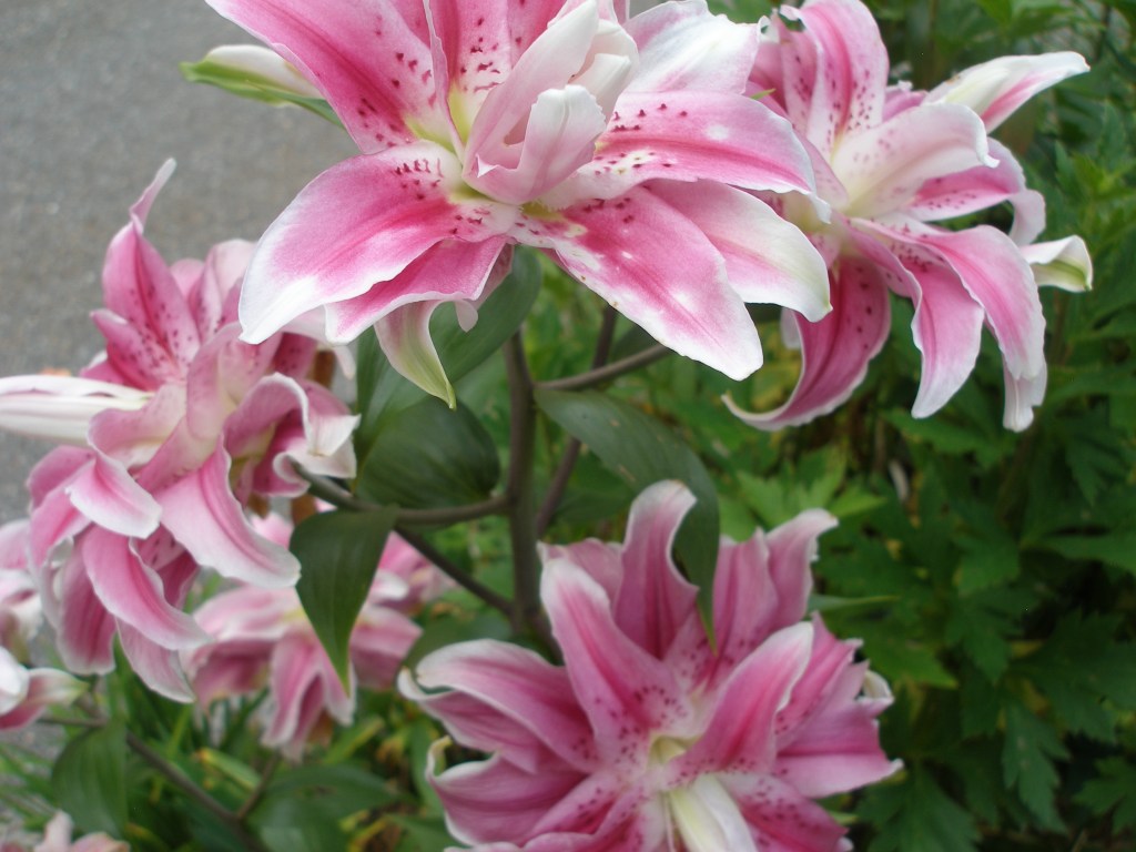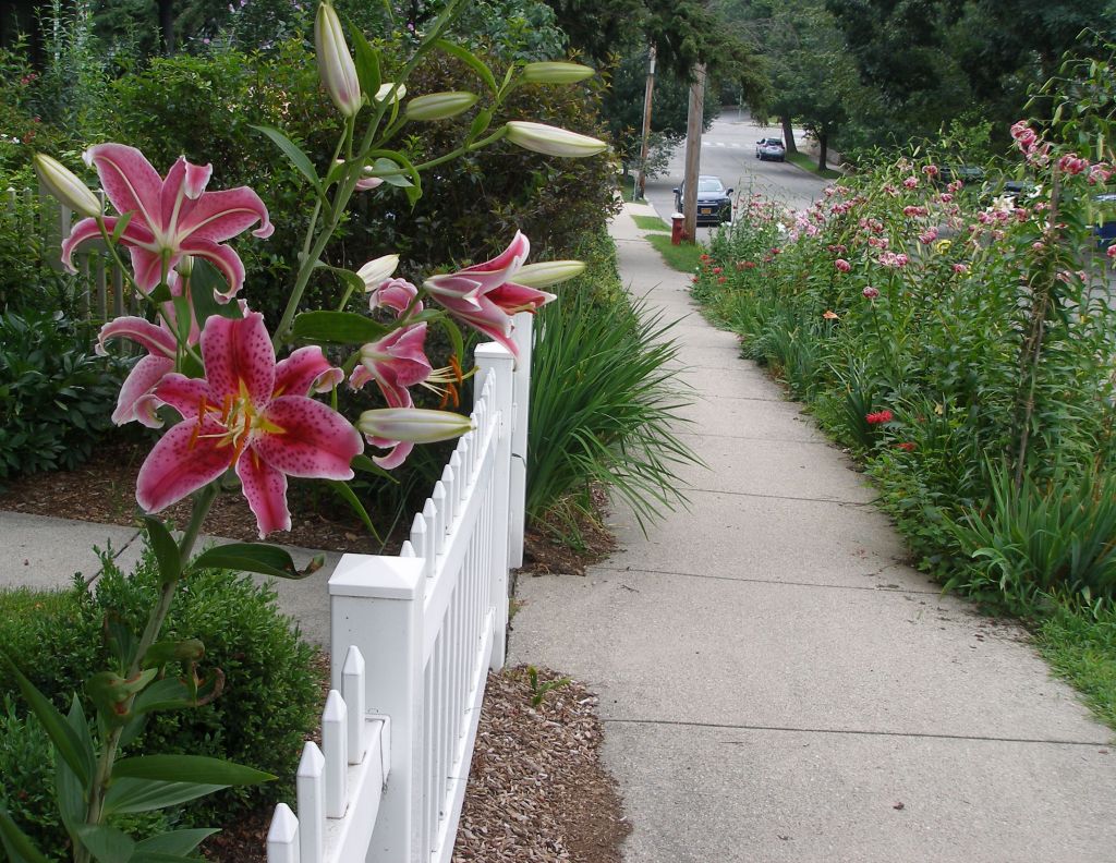 A woman told me that she was the gardener who had planted all the different lilies in the “hellstrip” by the sidewalk. She told me that she did not own the land where they were planted. I said I was sure the town would not mind, especially as she had carefully added stakes to keep the riot of color and form from flopping out into the street.