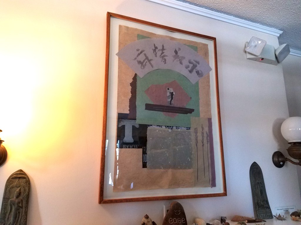 Toward the end of a silent retreat I attended, I saw the picture above hanging in the coatroom of the Insight Meditation Retreat Center in Barre, Massachusetts, USA. My Japanese tea ceremony teacher, Giselle Maya, confirmed my suspicions that she was the artist who had made that collage. She added, “I love that place and all it gave to me, all I learned in many many retreats, dharma talks, and interviews.”