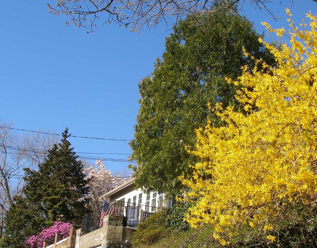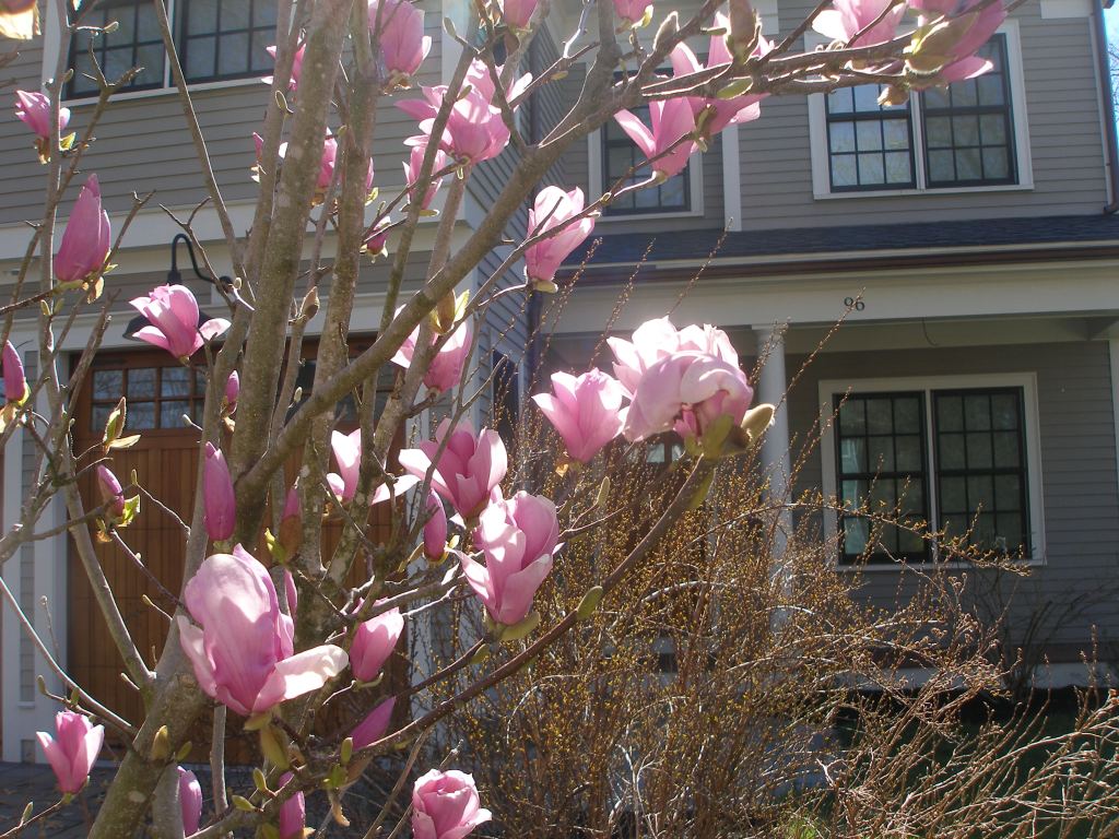 When I was growing up in Pennsylvania, spring was more leisurely with dancing daffodils holding their own beneath pink dogwoods on the slope by our house. But near Boston, the progression usually starts more slowly with just the neon yellow of Forsythias. Not this year. Let’s hope all this glory lasts for a while.