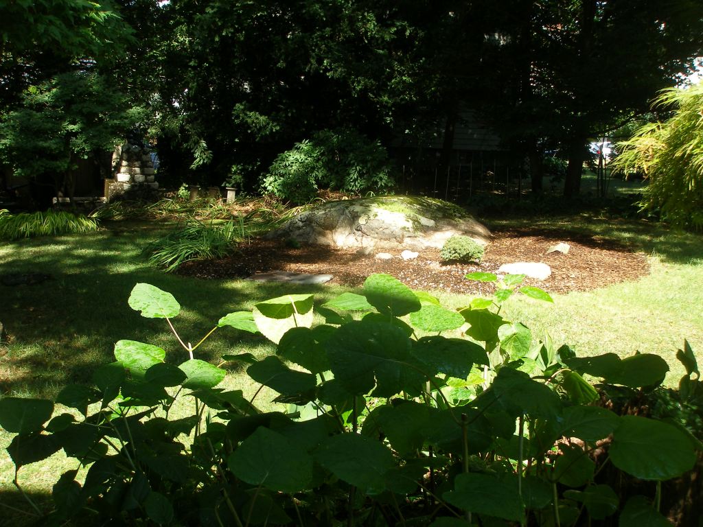 The first photo below was taken around 4 pm. The other photos were taken at intervals starting at 11 in the morning. Unfortunately, still photos cannot show how shadows dance across this scene when a breeze stirs the leaves.