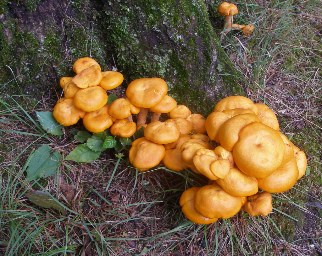 Although areas nearby have gotton considerable rain, where I live in Arlington, Massachusetts, USA, we had a whole month of unrelenting dryness. This year there is nothing like the diverse abundance I saw around this time in 2021. Still there were some notable mushrooms popping up here and there. Evidently Chicken of the Woods and Jack O Lanterns produce fruiting bodies even when it is dry.