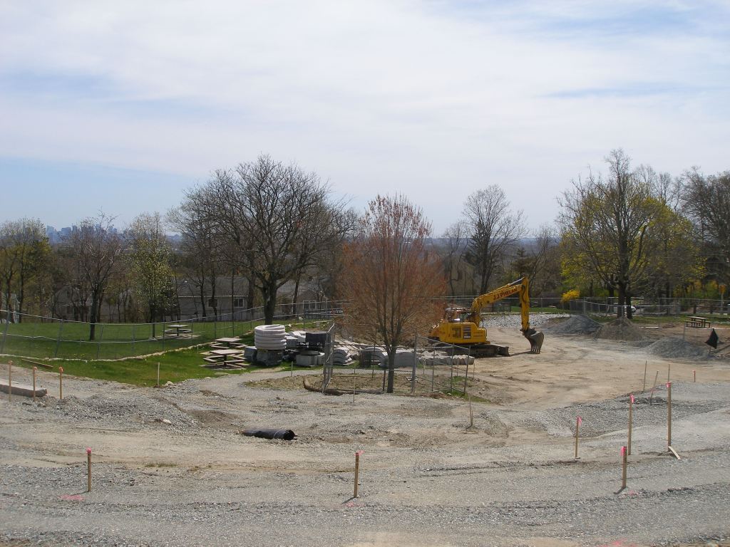 The start of the new playground project involved reshaping the slope where a long slide had been. I was glad they would replace that slide as it was well loved by the kids who used it.