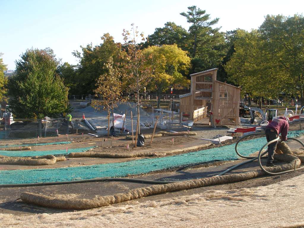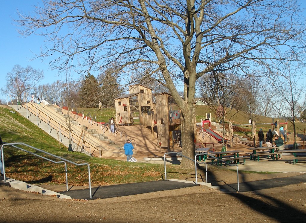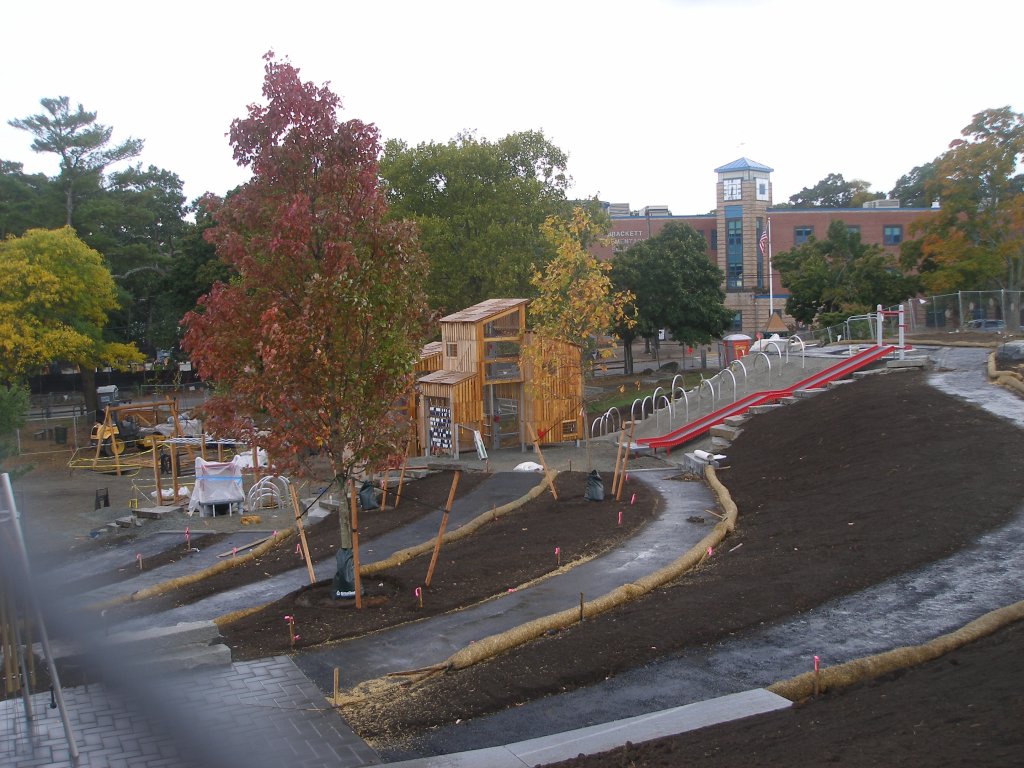 And a few days later, there were fewer people. It will be interesting to see how it settles in, how the kids use the playground’s various features, and how the new plantings look in the spring.