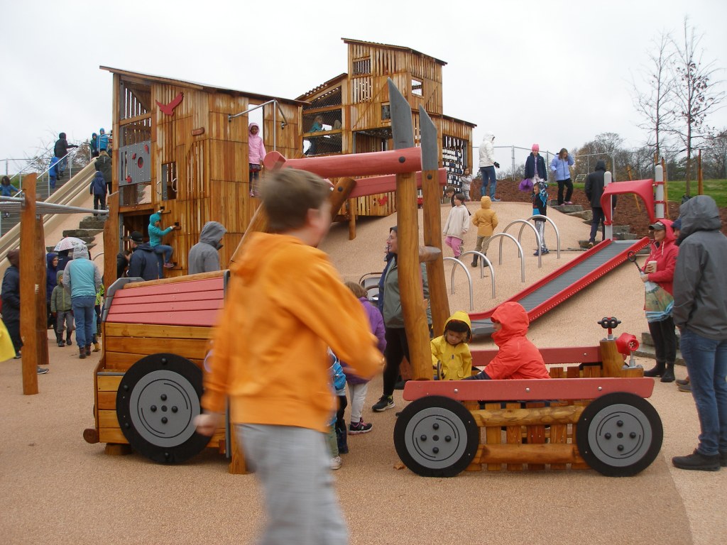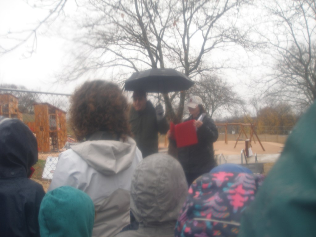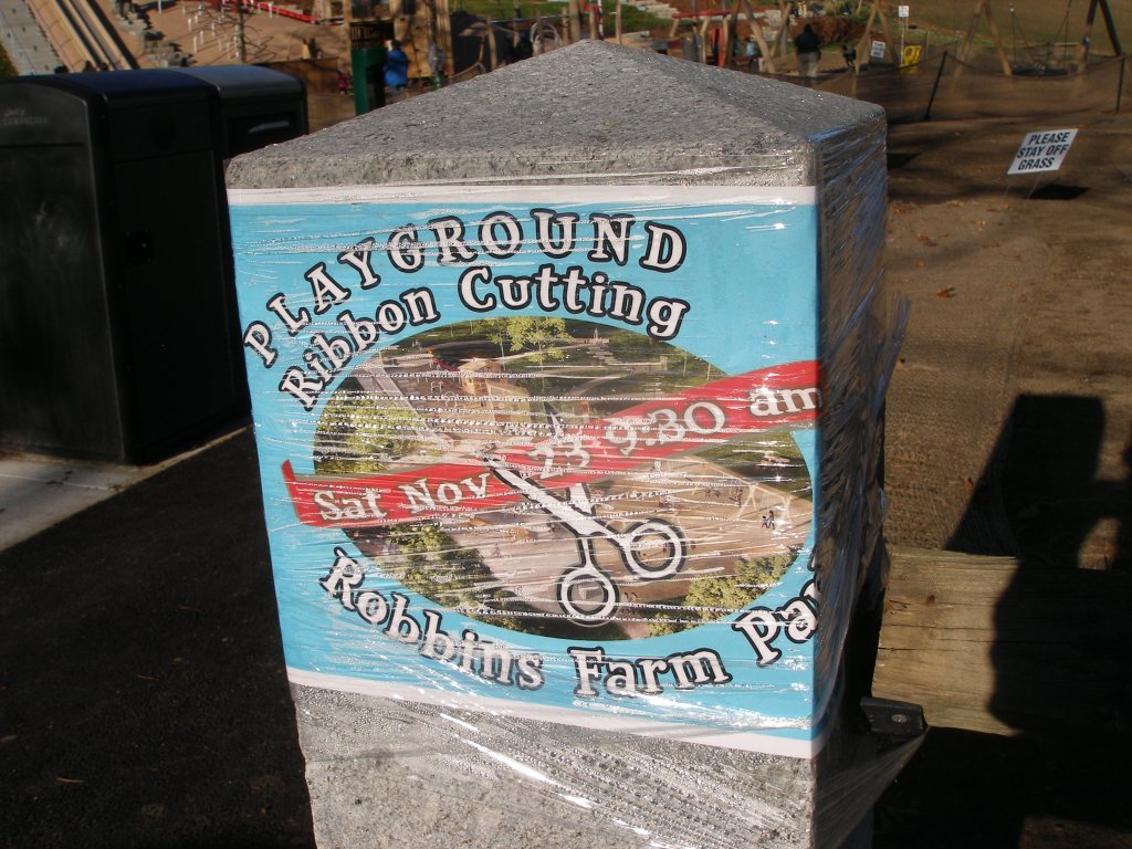 The Ribbon Cutting Ceremony brought out quite a large crowd even though it was raining. The kids chanted “Cut the ribbon. Cut the ribbon,” and there was considerable noise and glee as they scrambled in to explore their new playground.