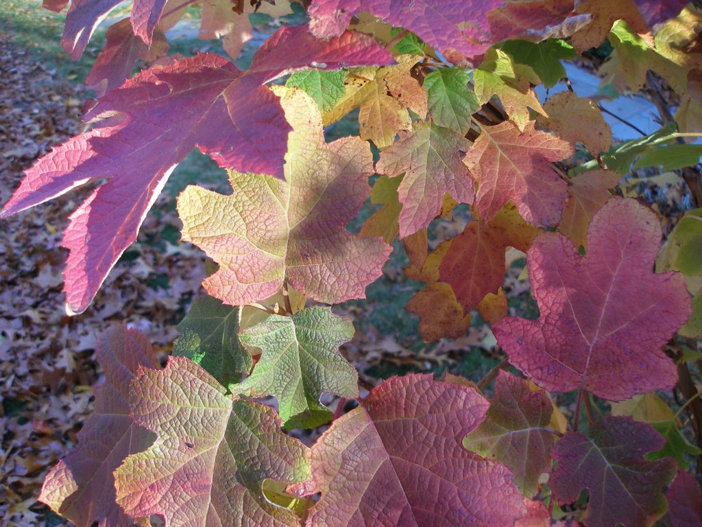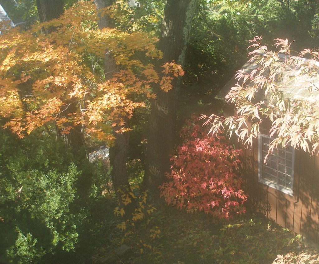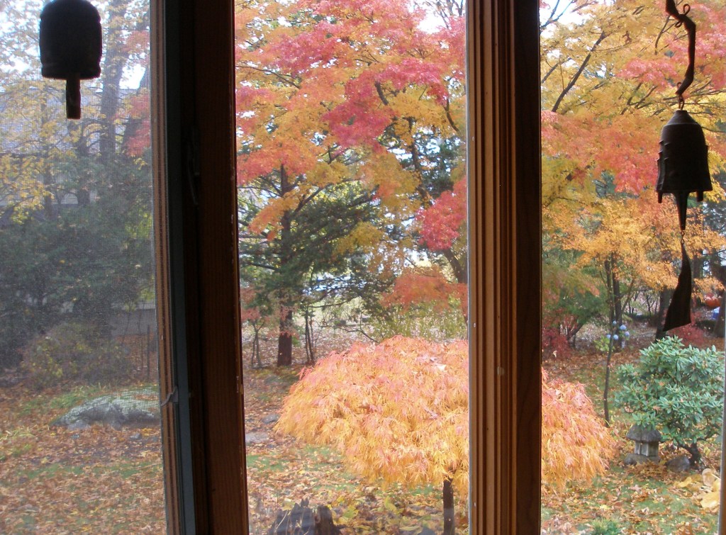 I cannot help staring out my kitchen window at this time of year. The kaleidoscopic patterns of leaf colors keep shifting on the trees and bushes, then fall into delightful patterns on the ground.