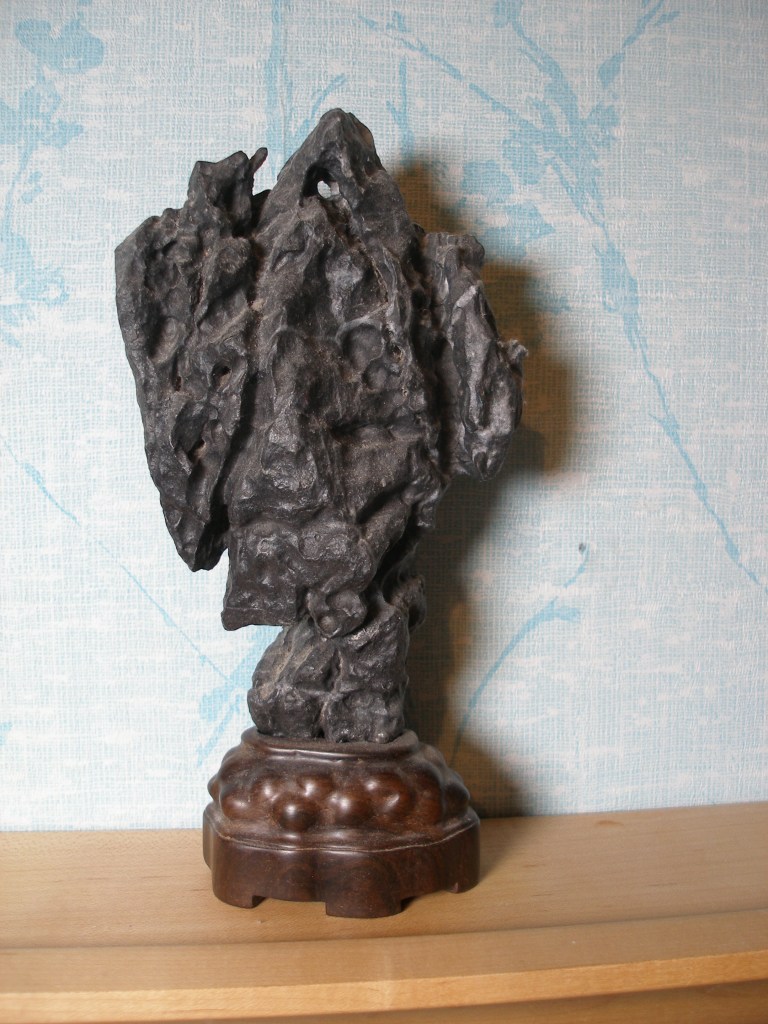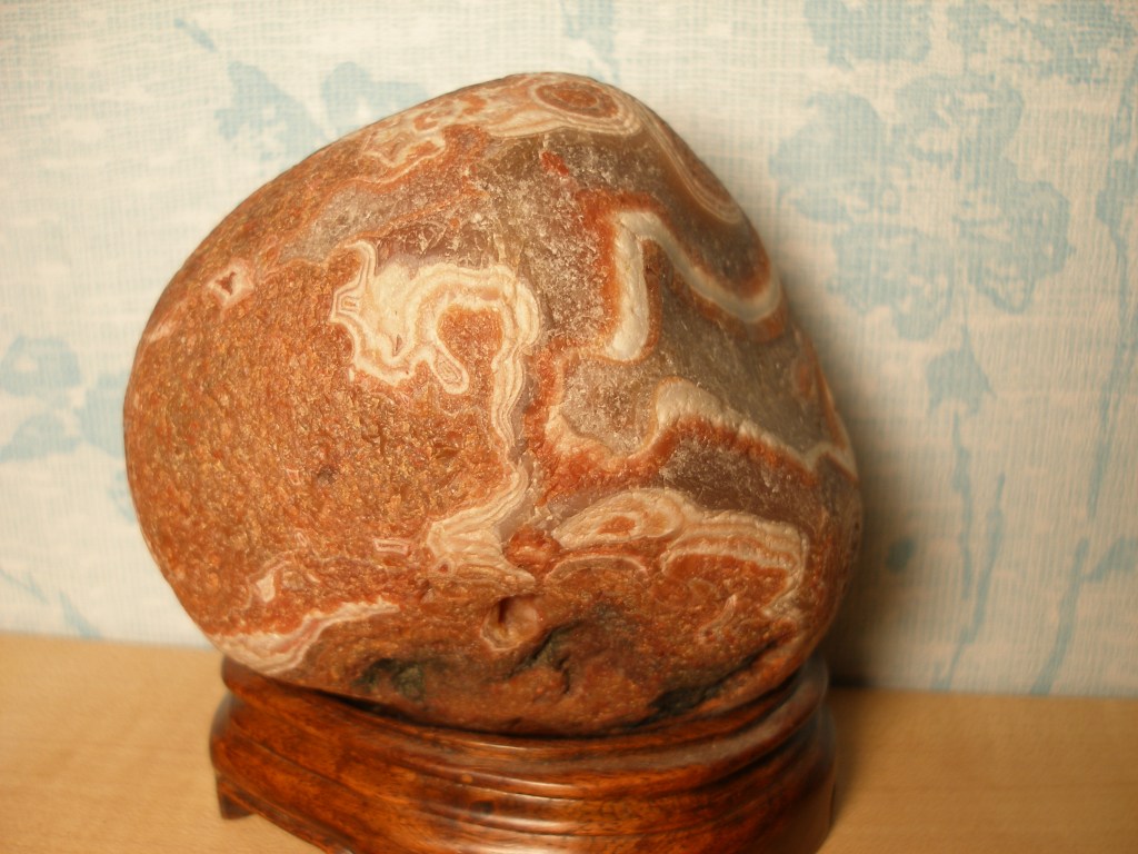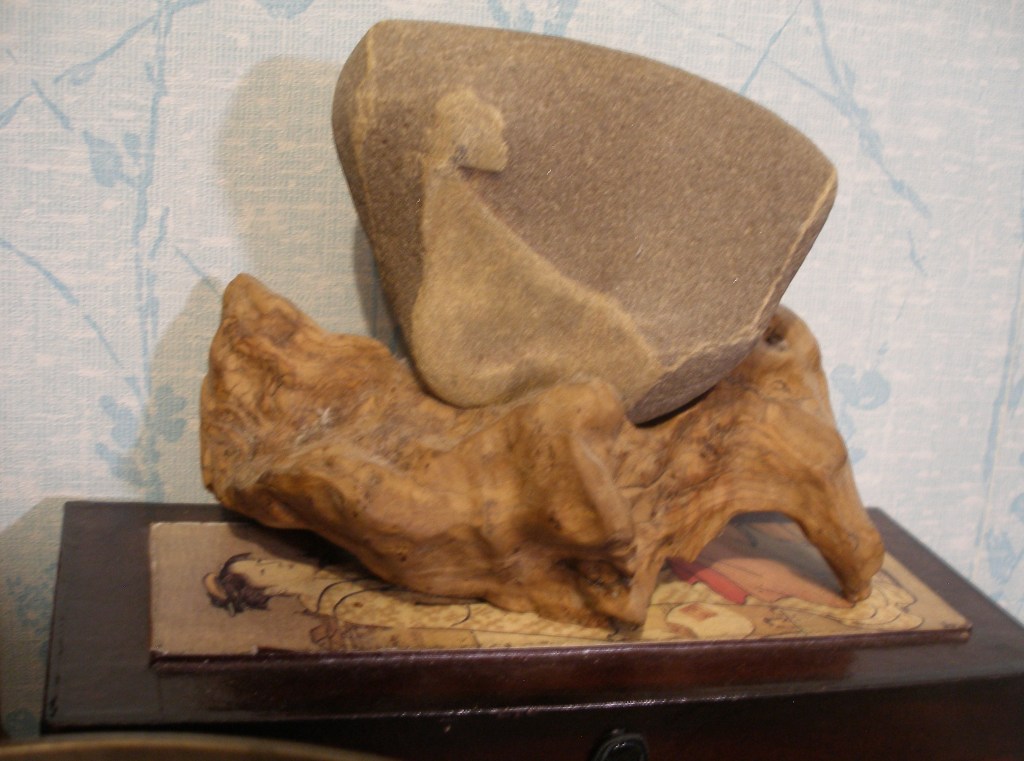 After many years of collecting evocative stones, somehow I managed to acquire an oriental princess, 3 hut stones, a pontificating wizard holding his book of spells, and no less than 4 dragons. The ones on stands are viewing stones. In two cases, I noticed “mythical” images in polished jasper slabs.