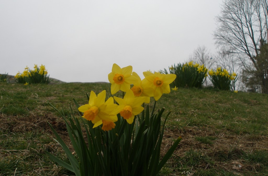 It was quite cold this spring. After several years of very little snow, we had several inches for most of the winter and that took its time melting. Then we still had nights below freezing and cold days for quite a while. Still there were signs. The daffodils started blooming on schedule. There were buds here and there. And when we got a few warm days towards the end of the month it was catch up time.